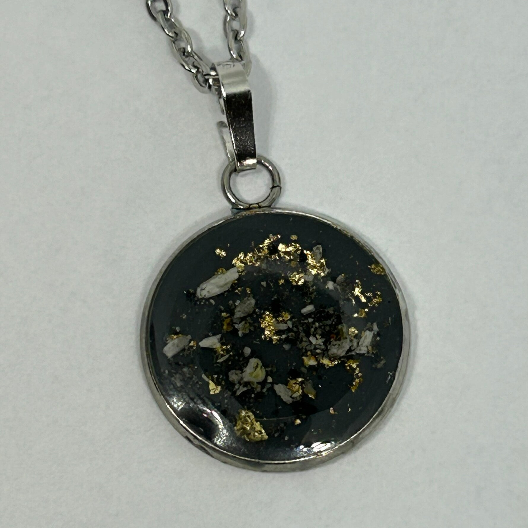 Je nach Farbauswahl der Fassung beinhaltet der Anhänger Blattsilber, Blattgold oder roséfarbenes Blattgold.